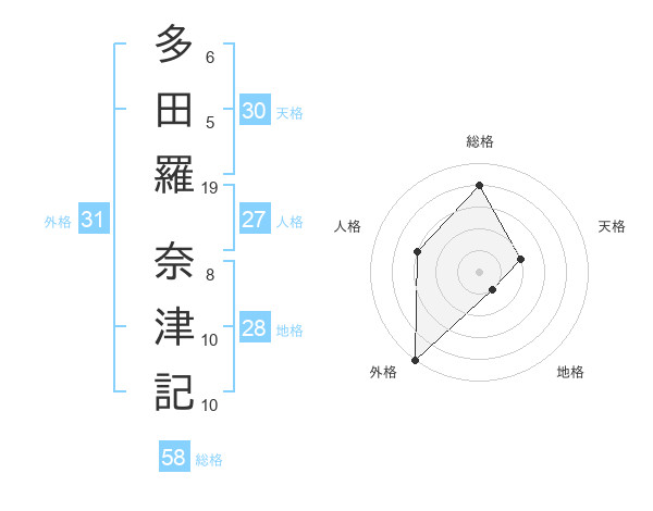 多田羅 奈津記さんを姓名の画数から五運を鑑定