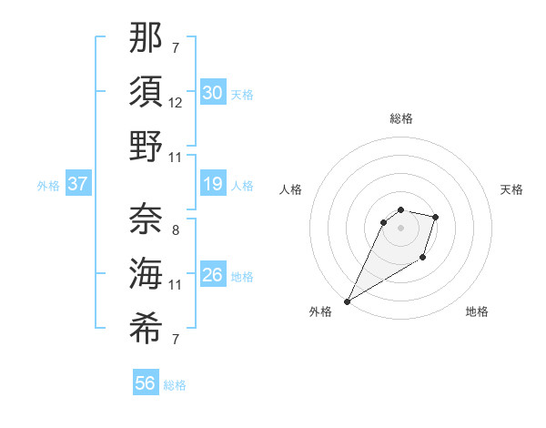 那須野 奈海希さんを姓名の画数から五運を鑑定