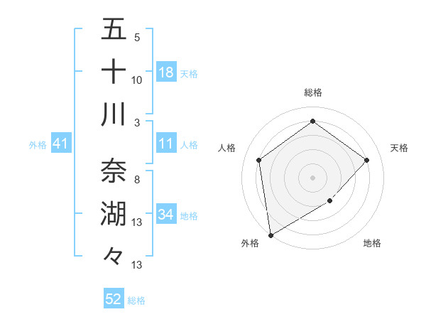 五十川 奈湖々さんを姓名の画数から五運を鑑定
