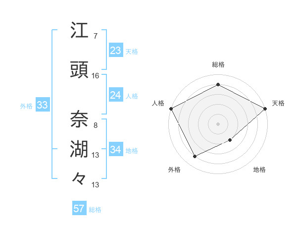 江頭 奈湖々さんを姓名の画数から五運を鑑定