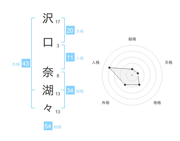 沢口 奈湖々さんを姓名の画数から五運を鑑定