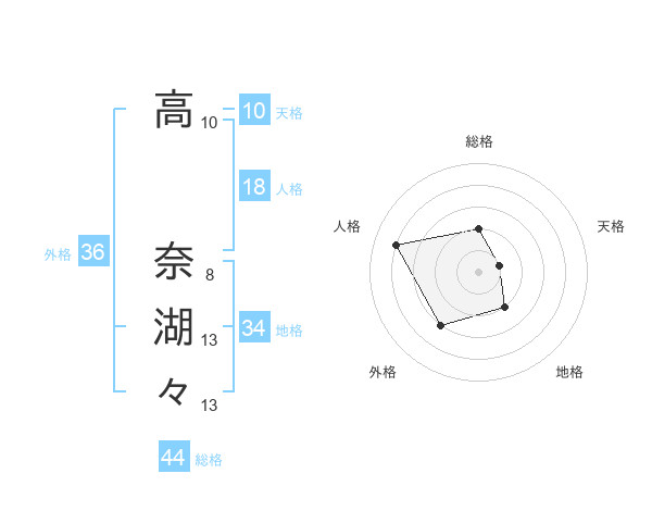 高 奈湖々さんを姓名の画数から五運を鑑定
