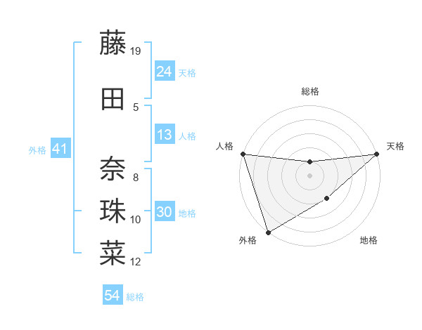 藤田 奈珠菜さんを姓名の画数から五運を鑑定