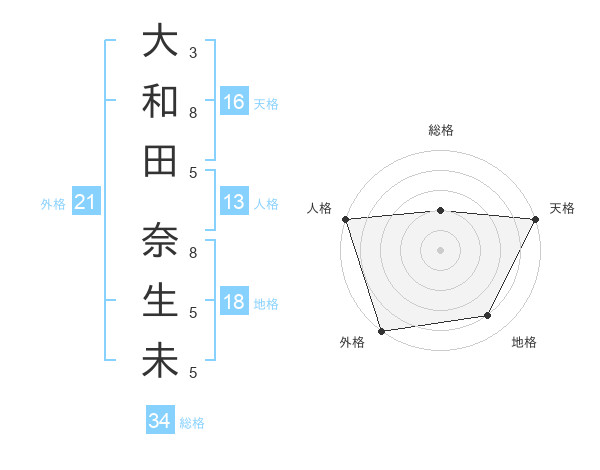 大和田 奈生未さんを姓名の画数から五運を鑑定