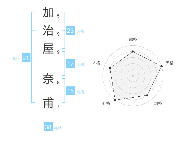 加治屋 奈甫さんの天格は23画の5点!