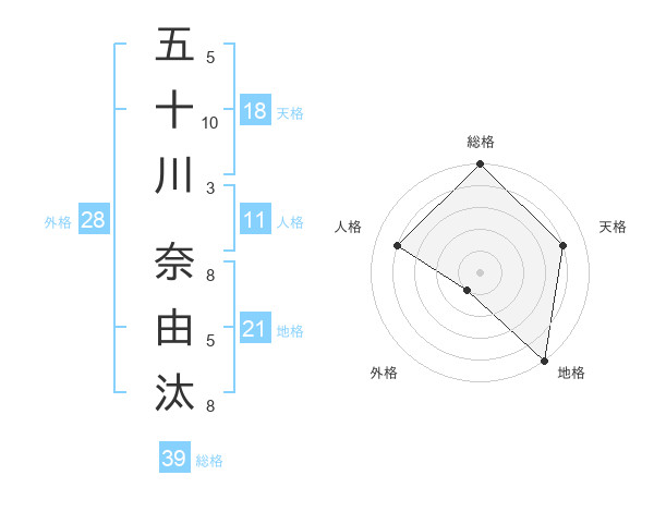 五十川 奈由汰さんの総格は39画の5点!