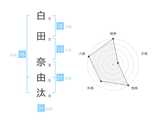 白田 奈由汰さんを姓名の画数から五運を鑑定