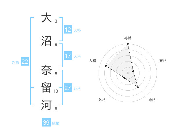 大沼 奈留河さんを姓名の画数から五運を鑑定