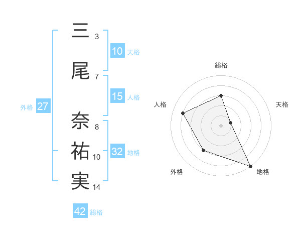 三尾 奈祐実さんを姓名の画数から五運を鑑定