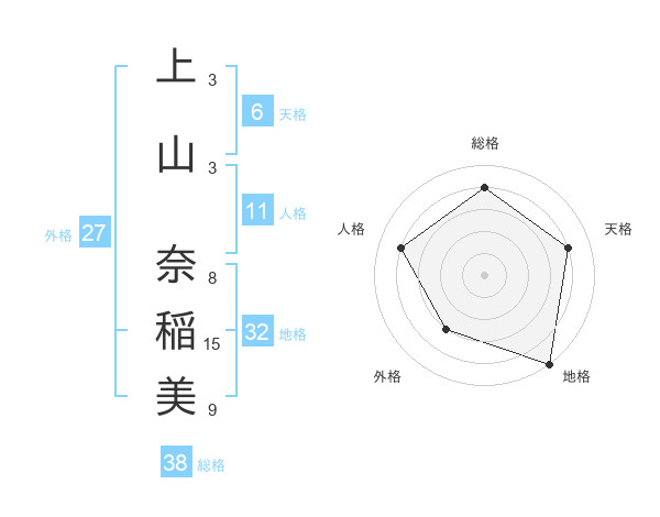 上山 奈稲美さんの総格は38画の4点!