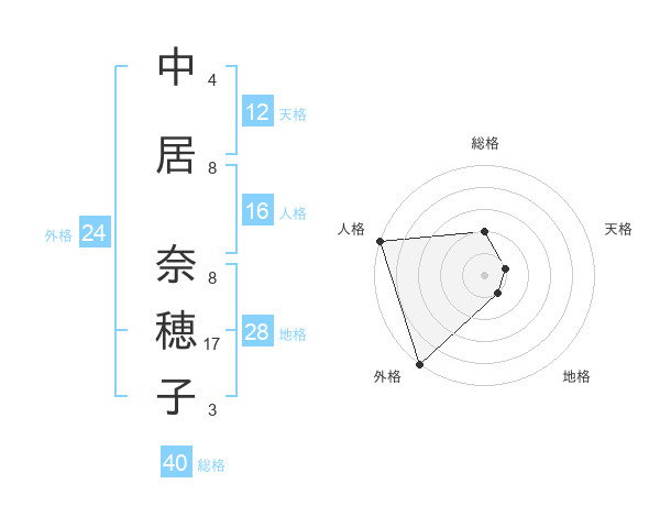 中居 奈穂子さんの外格は24画の5点