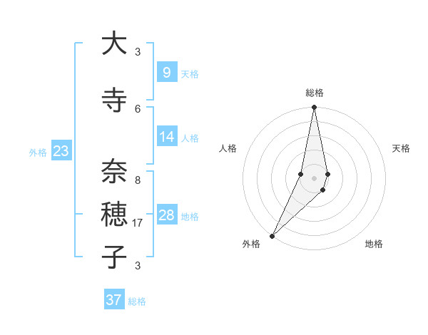 大寺 奈穂子さんの総格は37画の5点!
