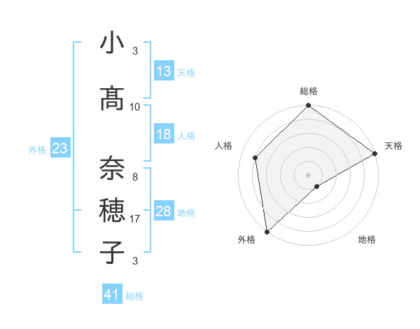 小髙 奈穂子さんを姓名の画数から五運を鑑定