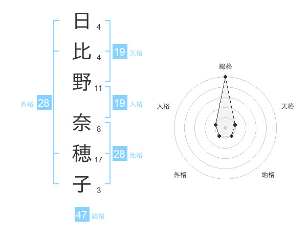 日比野 奈穂子さんを姓名の画数から五運を鑑定