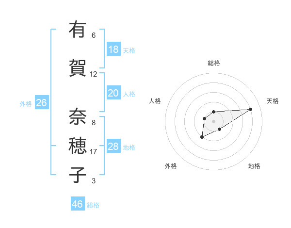 有賀 奈穂子さんを姓名の画数から五運を鑑定
