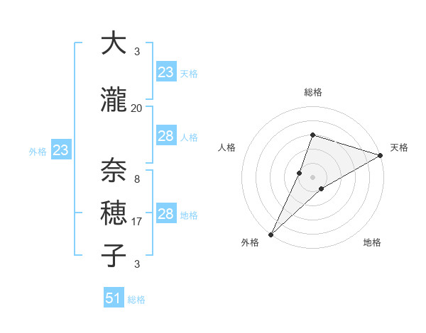 大瀧 奈穂子さんを姓名の画数から五運を鑑定