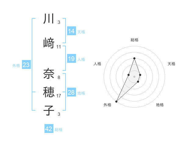 川﨑 奈穂子さんの外格は23画の5点!