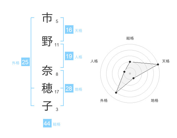 市野 奈穂子さんの天格は16画の5点!