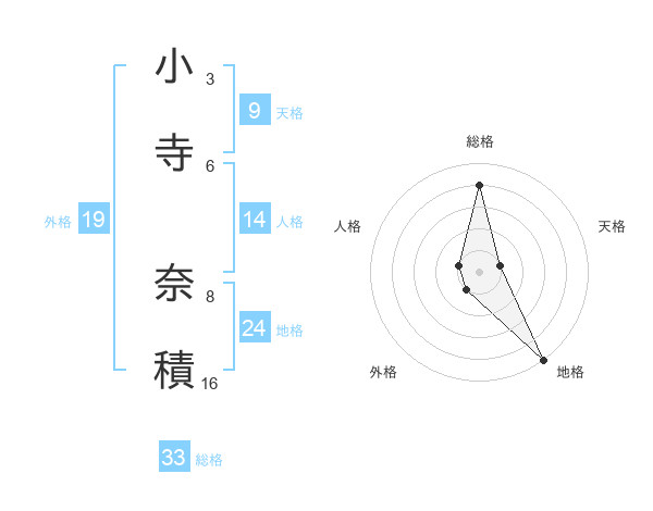 小寺 奈積さんを姓名の画数から五運を鑑定