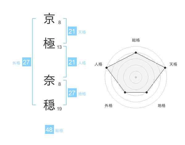 京極 奈穏さんの天格は21画の5点!