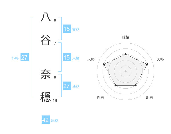 八谷 奈穏さんを姓名の画数から五運を鑑定