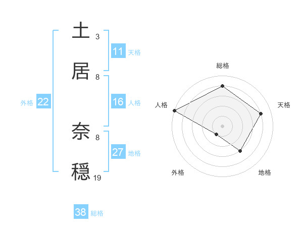 土居 奈穏さんを姓名の画数から五運を鑑定