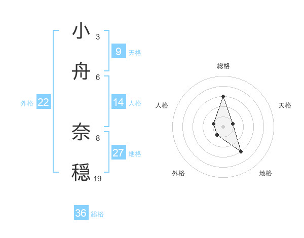 小舟 奈穏さんを姓名の画数から五運を鑑定