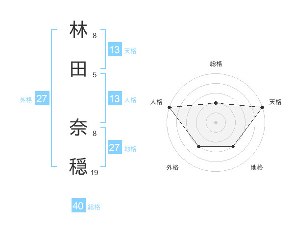 林田 奈穏さんの天格は13画の5点!