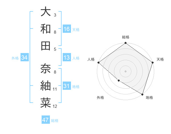 大和田 奈紬菜さんを姓名の画数から五運を鑑定