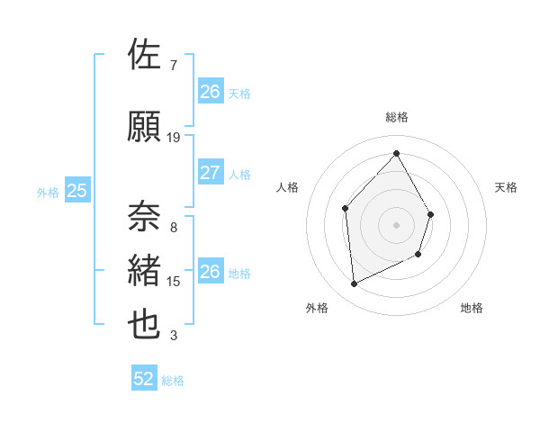 佐願 奈緒也さんを姓名の画数から五運を鑑定