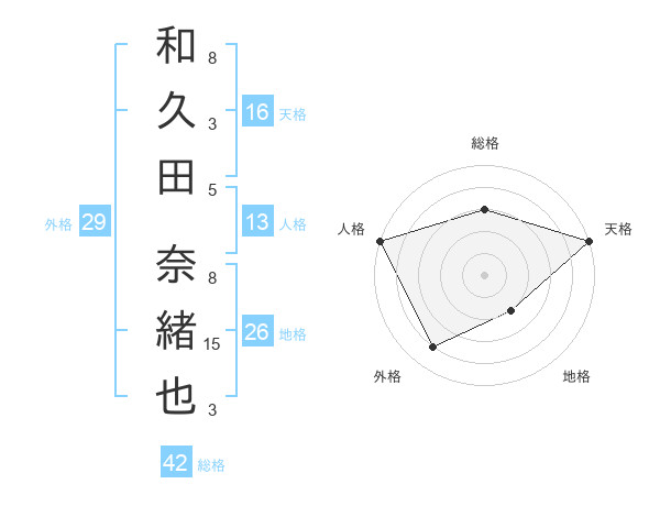 和久田 奈緒也さんの天格は16画の5点