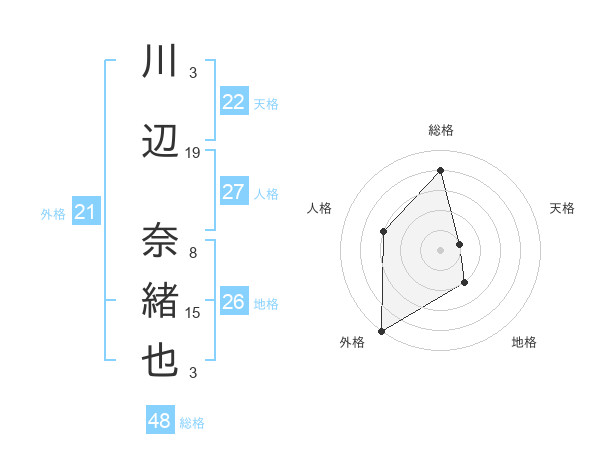 川辺 奈緒也さんを姓名の画数から五運を鑑定
