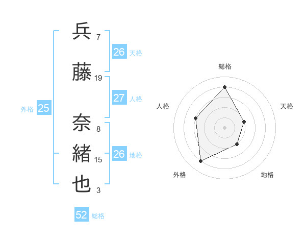 兵藤 奈緒也さんの天格は26画の2点!
