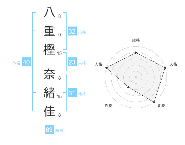 八重樫 奈緒佳さんを姓名の画数から五運を鑑定