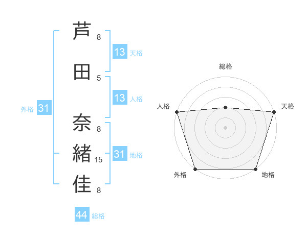 芦田 奈緒佳さんを姓名の画数から五運を鑑定