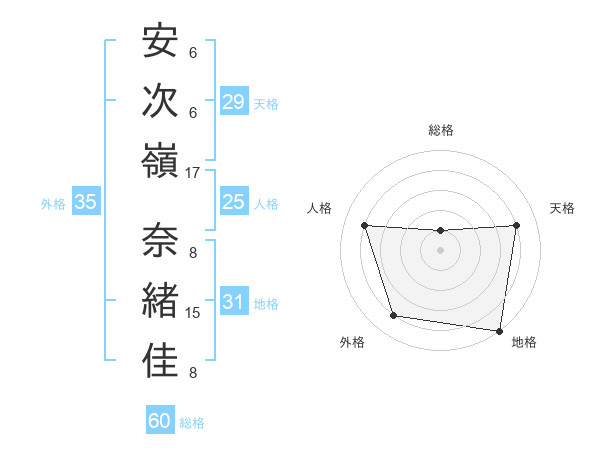 安次嶺 奈緒佳さんの総格は60画の1点!