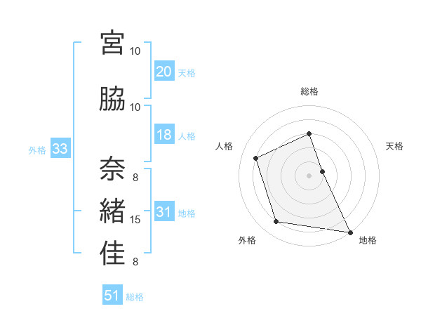 宮脇 奈緒佳さんを姓名の画数から五運を鑑定