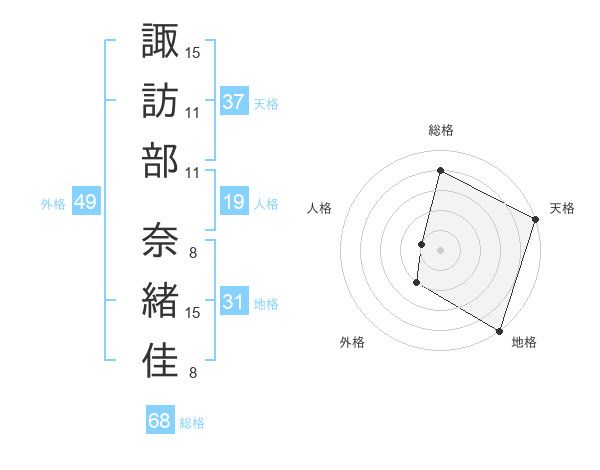諏訪部 奈緒佳さんの総格は68画の4点!