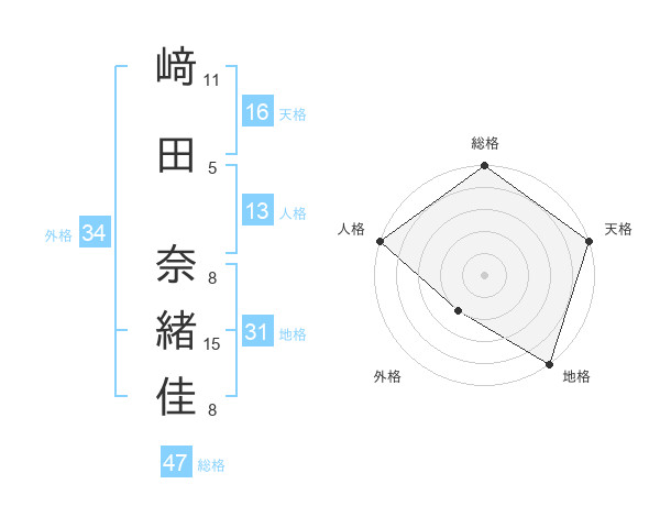 﨑田 奈緒佳さんを姓名の画数から五運を鑑定