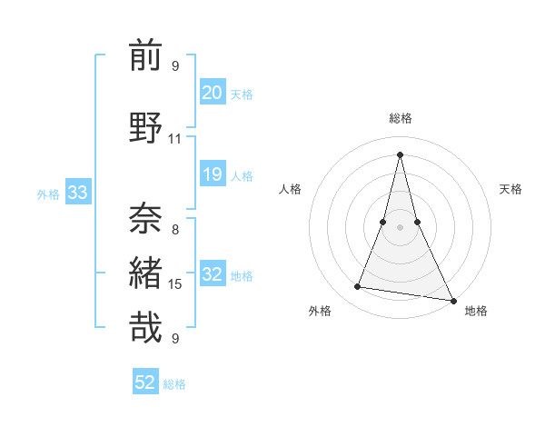 前野 奈緒哉さんを姓名の画数から五運を鑑定