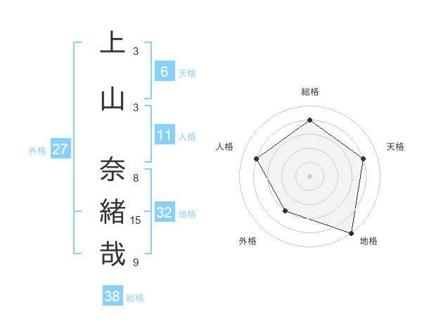 上山 奈緒哉さんの外格は27画の3点!