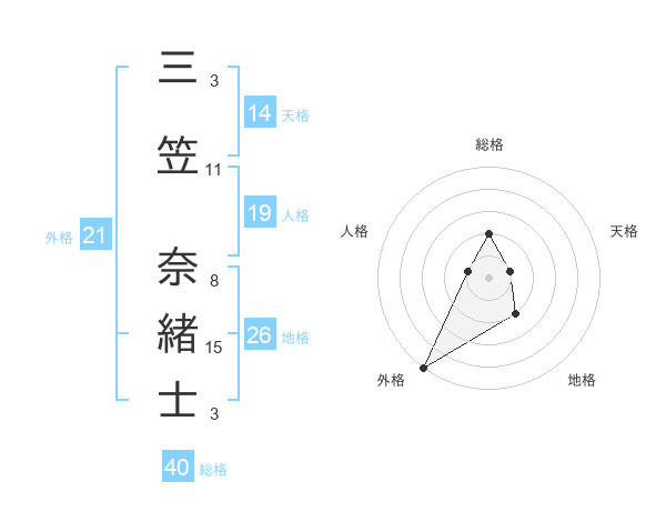 三笠 奈緒士さんを姓名の画数から五運を鑑定