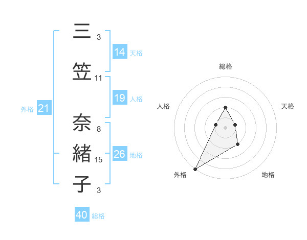 三笠 奈緒子さんの天格は14画の1点!