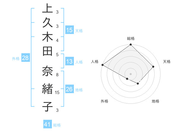 上久木田 奈緒子さんを姓名の画数から五運を鑑定