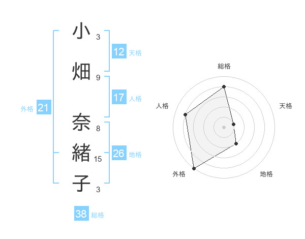 小畑 奈緒子さんを姓名の画数から五運を鑑定