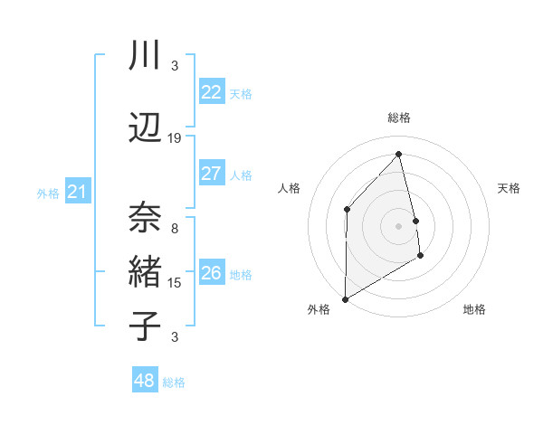 川辺 奈緒子さんを姓名の画数から五運を鑑定