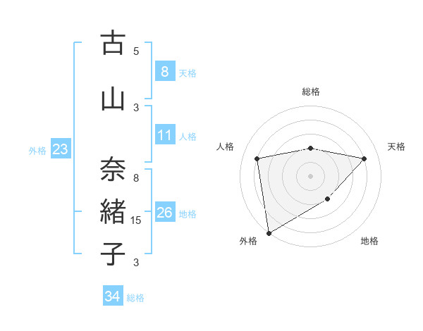 古山 奈緒子さんを姓名の画数から五運を鑑定
