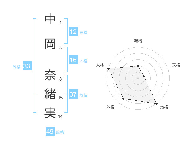 中岡 奈緒実さんを姓名の画数から五運を鑑定