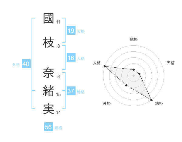 國枝 奈緒実さんを姓名の画数から五運を鑑定
