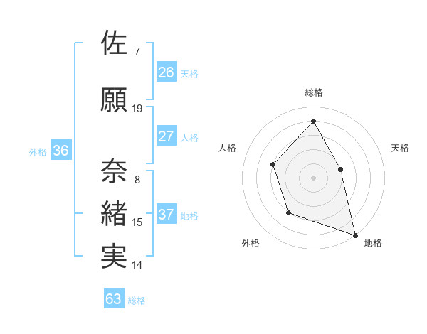 佐願 奈緒実さんの総格は63画の4点!